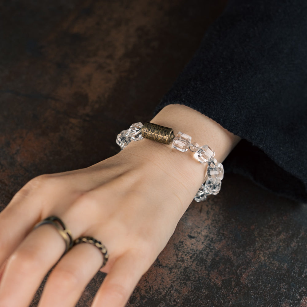 Antique Brass Clear Quartz Healing Bracelet for Energy and Vitality