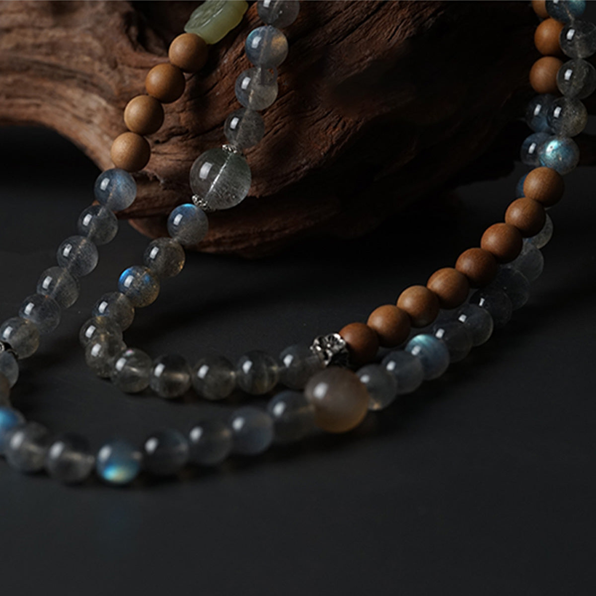 Material: Labradorite(8mm),Sandalwood,Sterling Silver,Hotan Jade